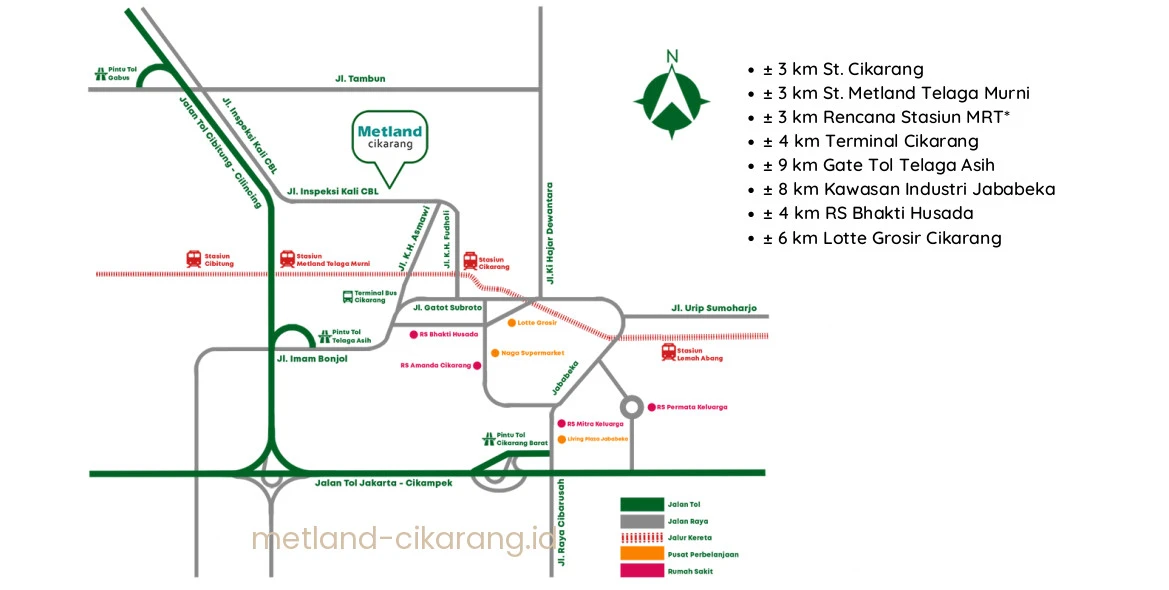 Lokasi Metland Cikarang Dimana lokasi Metland Cikarang ? Melihat peta lokasi dibawah, lokasi Metland Cikarang berada di dekat stasiun cikarang dan juga berdekatan dengan terminal cikarang.